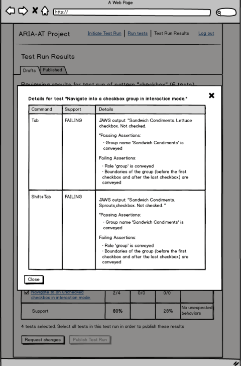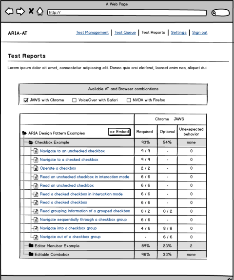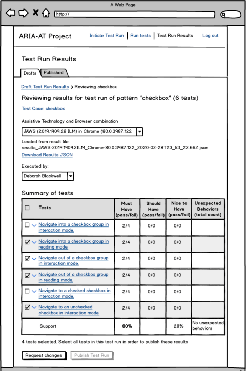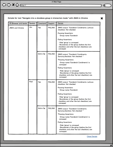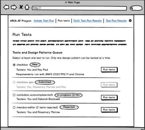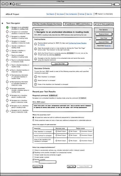 To solve the problem, I helped design the ARIA-AT app, a tool that helps us understand the current state of support for ARIA by Assistive Technologies and build Consensus about Assistive Technologies' behavior. The app provides a user-friendly interface for running and manage tests, viewing results, and understand the current state of support for ARIA, enabling teams to reach Assistive Technology Interoperability.